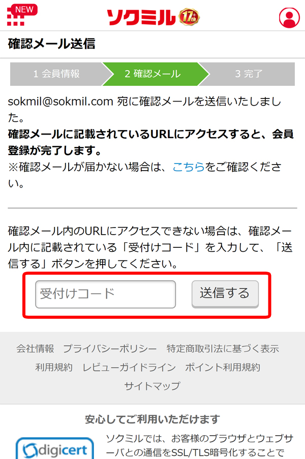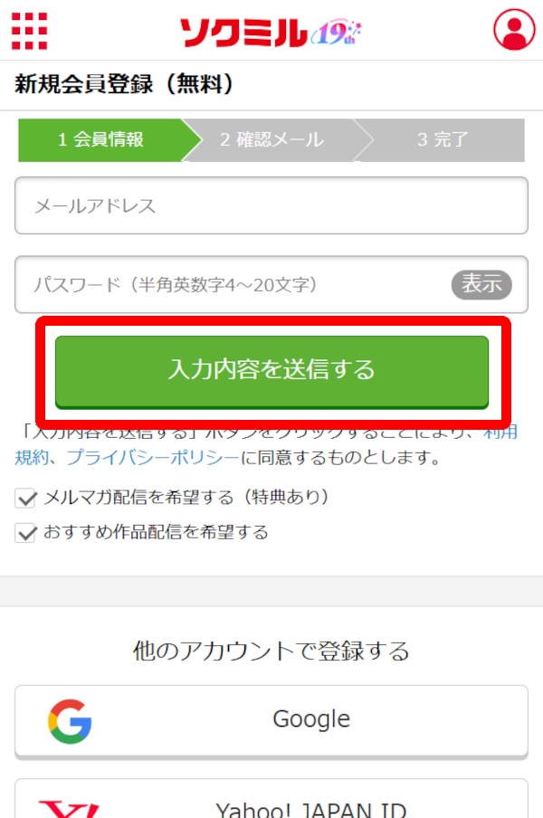 「FANZA」と同じように「ソクミル」も入会手続きは簡単です。必要な準備は自分が使っているメールアドレスだけです。